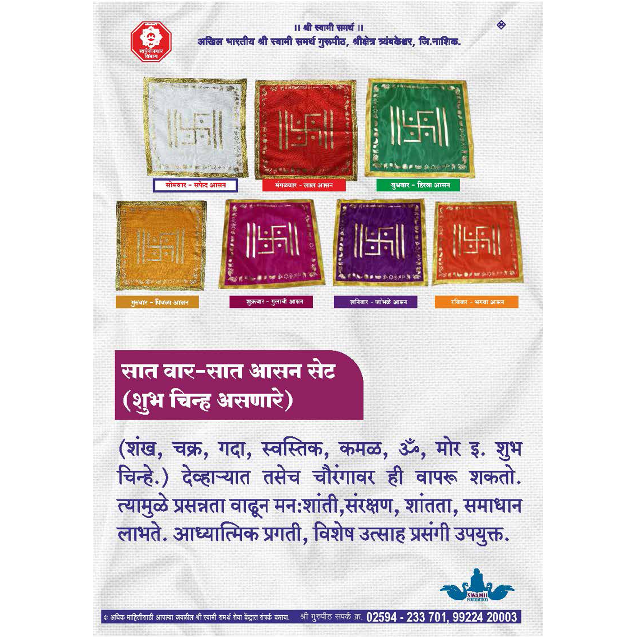 सात वार-सात आसन सेट (शुभ चिन्ह असणारे)