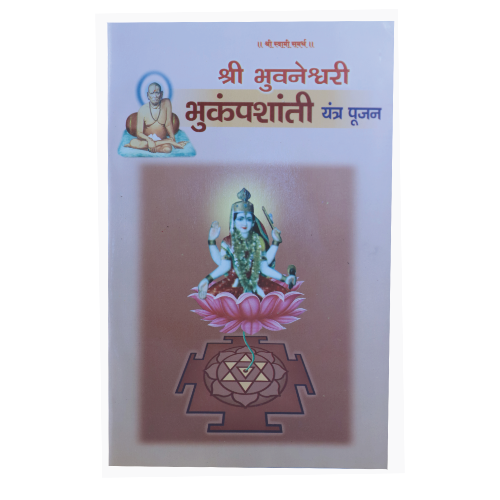 भूकंप ही नैसर्गीक आपत्ती आहे. भूगर्भातील हालचालीमूळे भूकंप होतो. भूकंपामूळे होणारी मनुष्यहानी व वित्तहानी टाळण्यासाठी आपण आपल्या सेवा केंद्रांच्या परिसरात भूकंप यंत्र स्थापन करायचे असते. या यंत्र स्थापनेच्या वेळी करावयाच्या पूजेची या ग्रंथात माहिती देण्यात आली आहे.