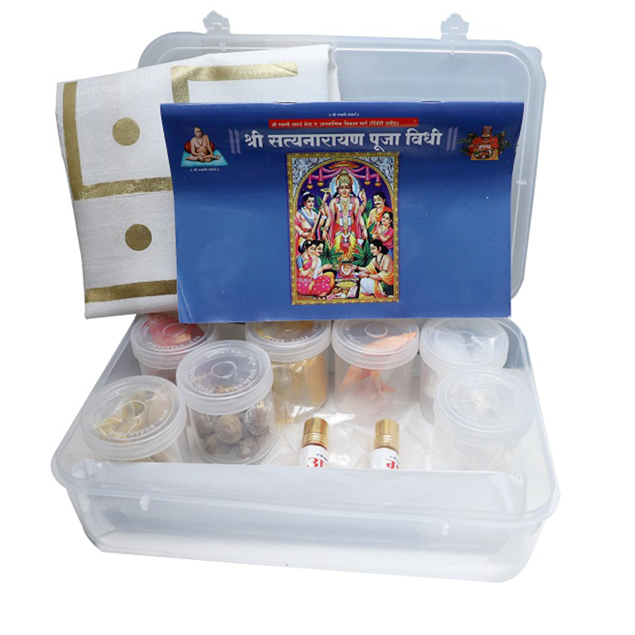 अखंड समृद्धी व लक्ष्मी प्राप्तीसाठी प्रतिमा पौर्णिमला घरच्याघरी श्री सत्यनारायण पूजन केले जाते त्या पूजेसाठी आवश्यक संपूर्ण साहित्याचा एकत्रित असा हा संच उपलब्ध आहे.